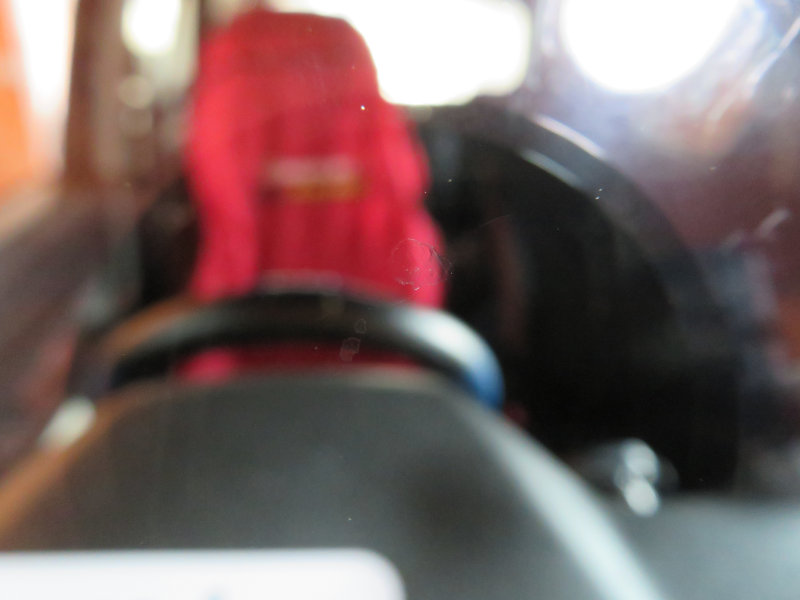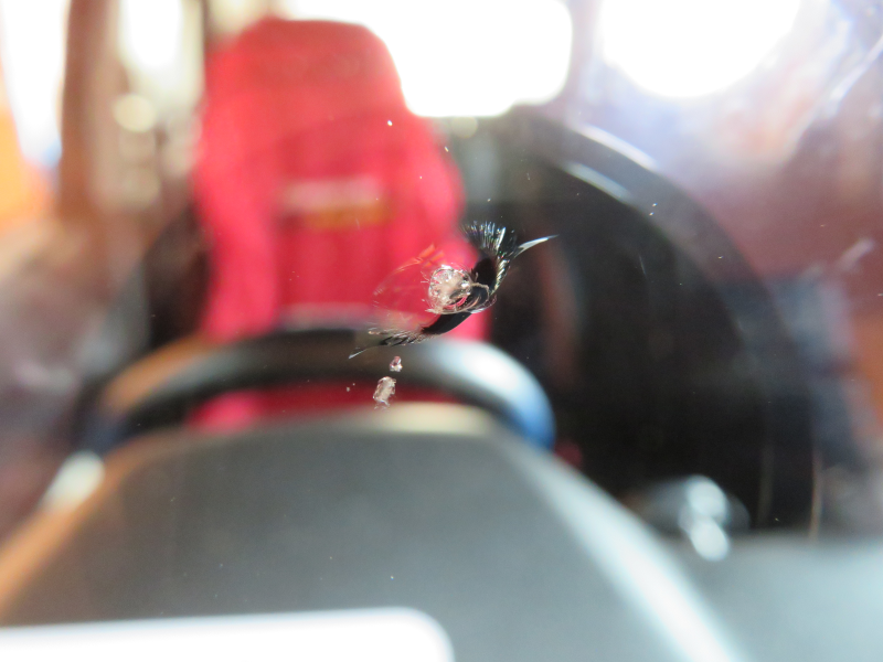 ヒビの位置は運転席正面で、大きさは1cmほどです。扇型のヒビの両に短いヒビが伸びています。