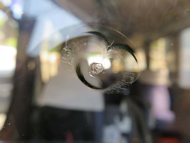 目玉型のヒビは他の形状のヒビに比べ、リペア後の透明度が高いのが特徴です。