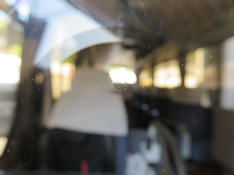 マイクロバス 目玉ヒビのガラスリペア