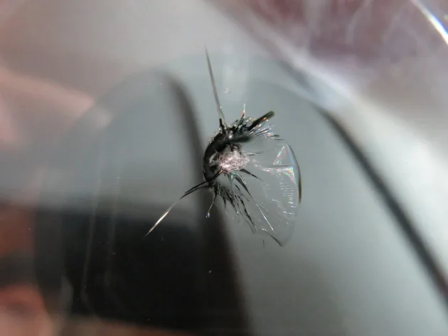 2. 飛び石による目玉ヒビをガラスリペアで修理