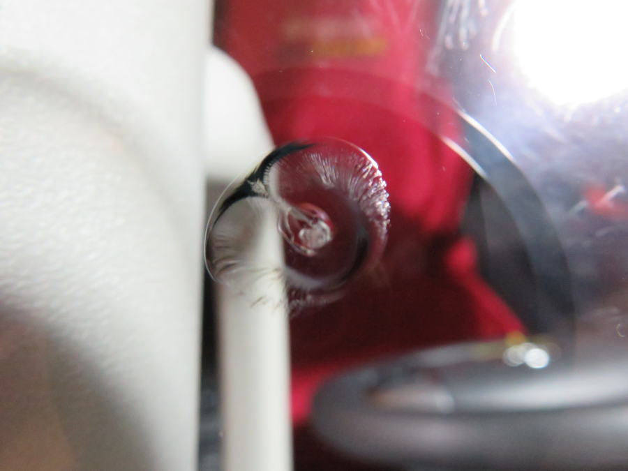 ガラスのはじに近い位置の目玉ヒビのリペア